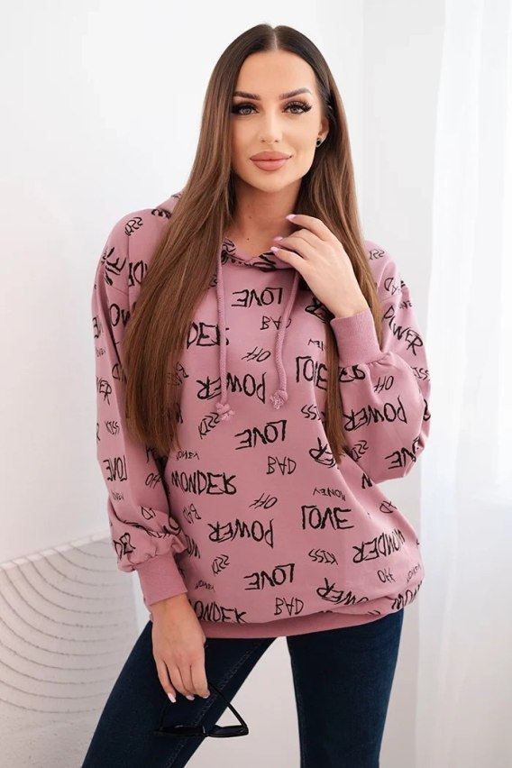 Bluza z napisami ciemno różowa