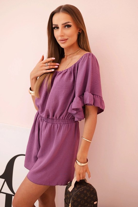 Kombinezon damski hiszpanka z falbankami i gumką w talii fioletowy