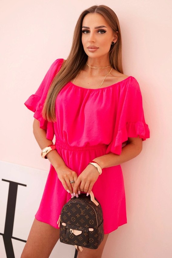 Kombinezon damski hiszpanka z falbankami i gumką w talii fuksja