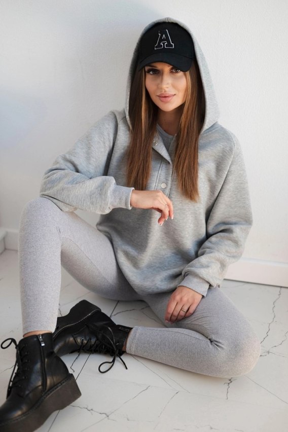 Komplet 3-częściowy składający się z bluzy, prążkowanych legginsów i topu to idealny strój dla kobiet ceniących sobie modny i wygodny styl. Bluza z długim rękawem i kapturem zapewni komfort i ciepło w chłodne dni, a jednocześnie dodaje charakteru całej stylizacji. Top podkreśli kobiecą sylwetkę, a prążkowane legginsy mogą dodać subtelnej elegancji i wyróżnić się w tłumie. Taki komplet świetnie sprawdzi się zarówno na co dzień, jak i na bardziej formalne okazje, a dzięki różnym wariantom kolorystycznym, każda kobieta może dopasować go do swojego gustu i stylu. Rozmiar jest uniwersalny i będzie odpowiedni dla Pań w rozmiarze S oraz M.