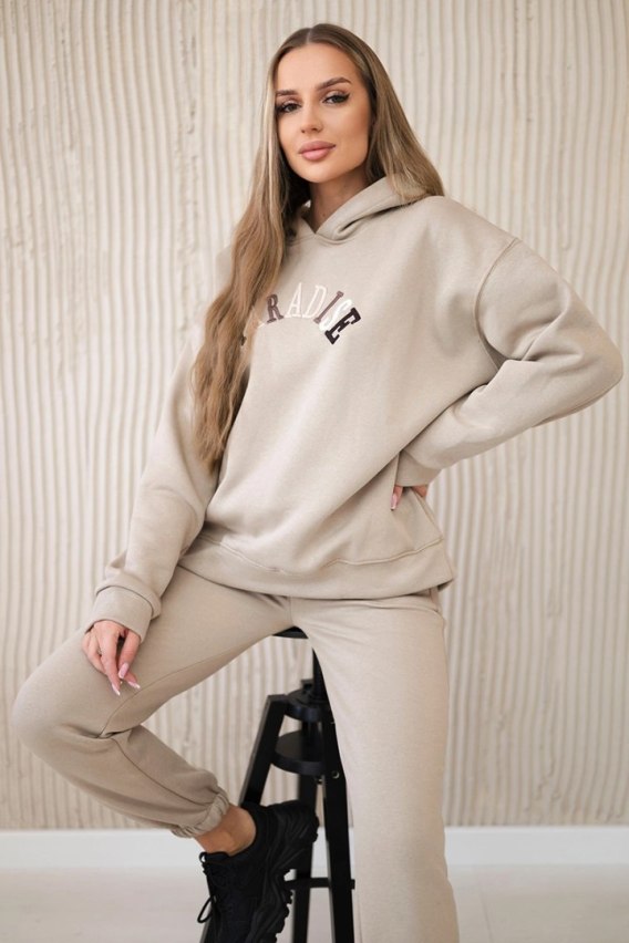 Komplet bawełniany z haftowanym napisem Paradise jasny beżowy