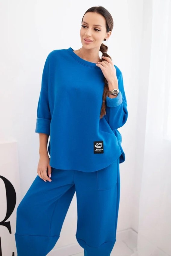 Komplet damski dresowy z grubszego materiału z szerokimi nogawkami chabrowy