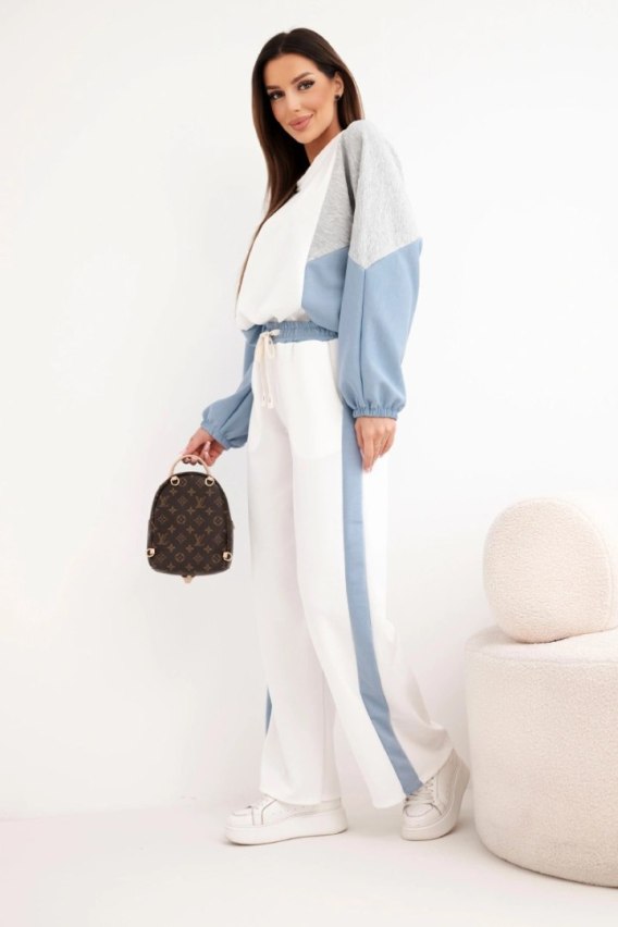 Fason: luźna bluza z długim rękawem, spodnie z szeroką nogawką
