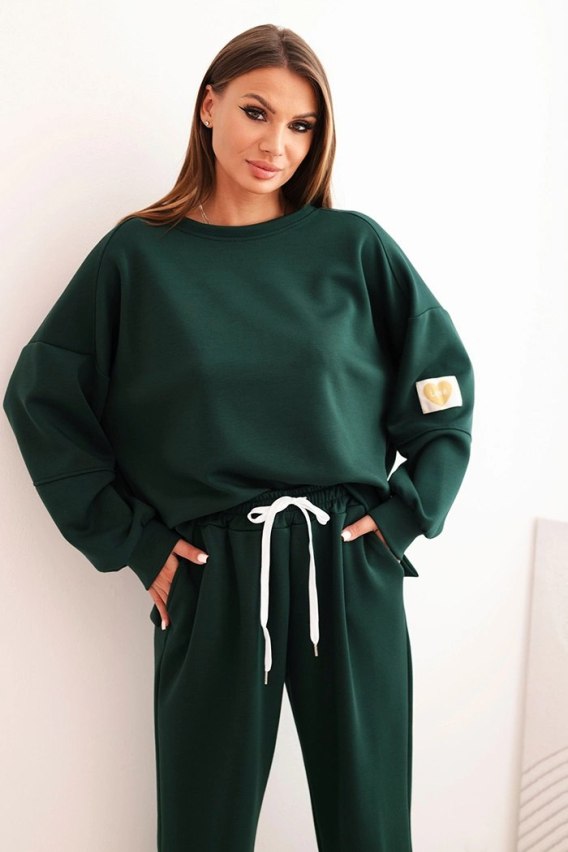 Komplet damski masełkowy z luźną bluzą i spodniami z napisem LOVE ciemny zielony