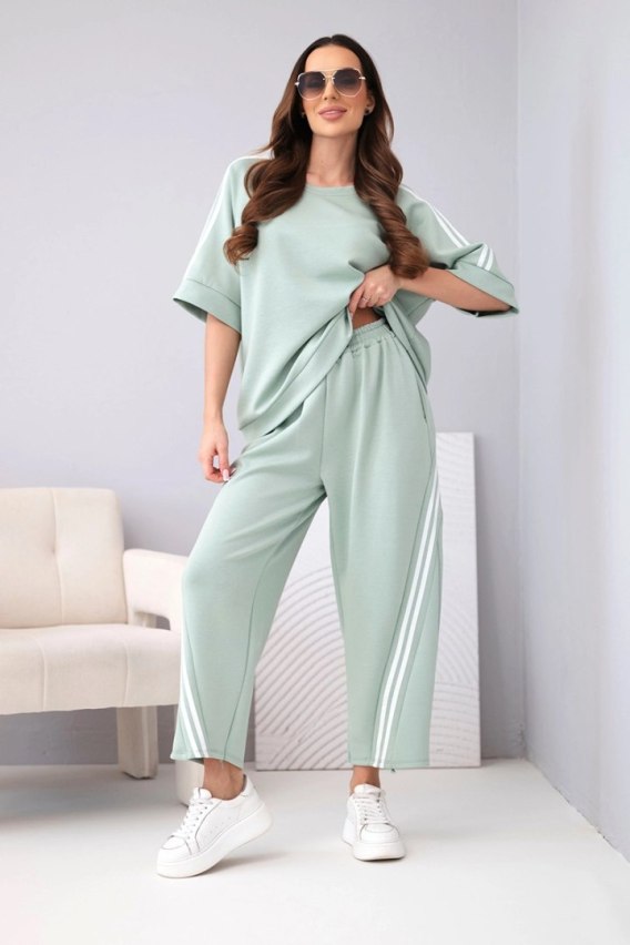Komplet damski masełkowy z wiskozy bluza i spodnie z lampasami ciemno miętowy