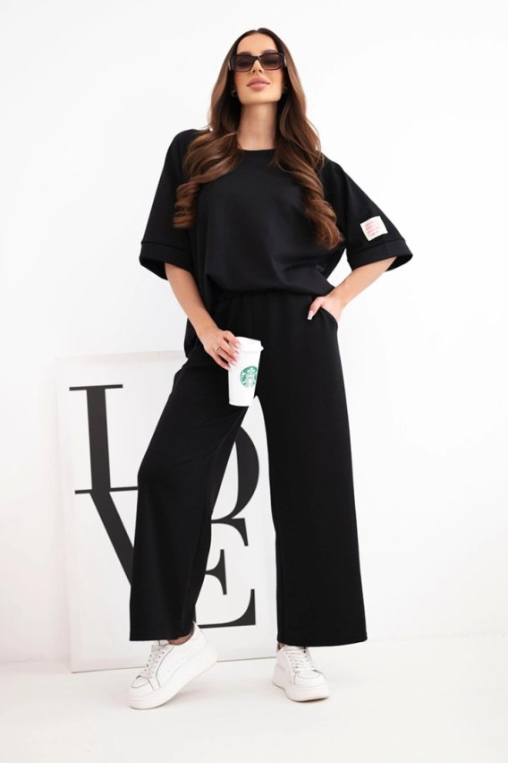 Komplet damski masełkowy z wiskozy bluza i szerokie spodnie czarny
