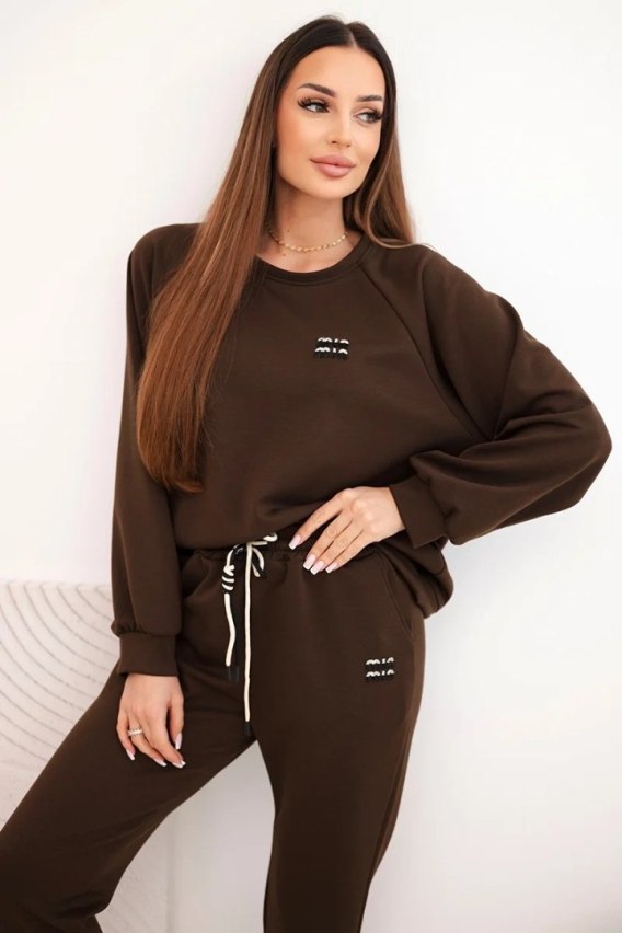 Komplet damski masełkowy z wiskozy z bluzą i spodniami brązowy