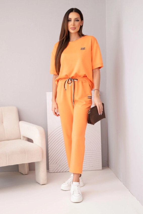 Komplet damski wiskozowy masełko z krótkim rękawem i spodniami z podwijaną nogawką pomarańczowy