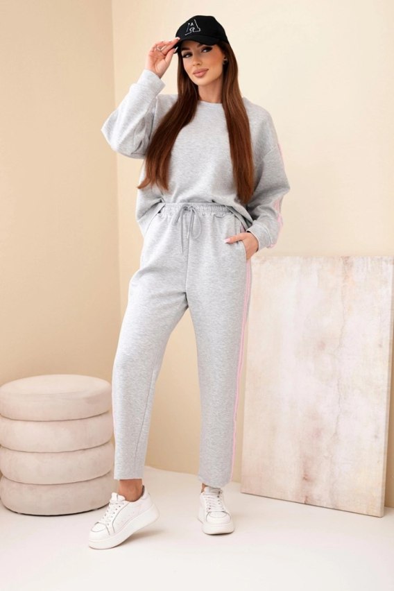 Komplet damski wiskozowy masełko z lampasami szary