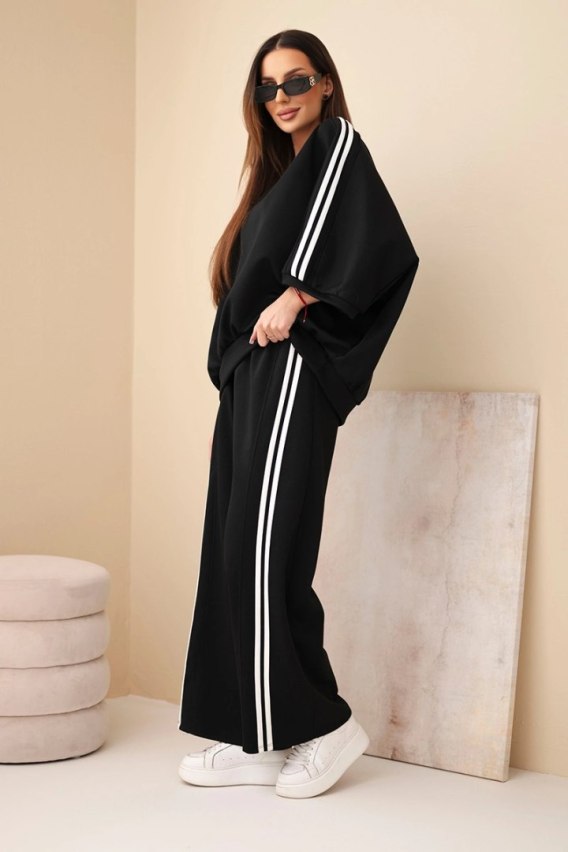 Komplet damski wiskozowy masełko z szeroką nogawką i luźną bluzą czarny