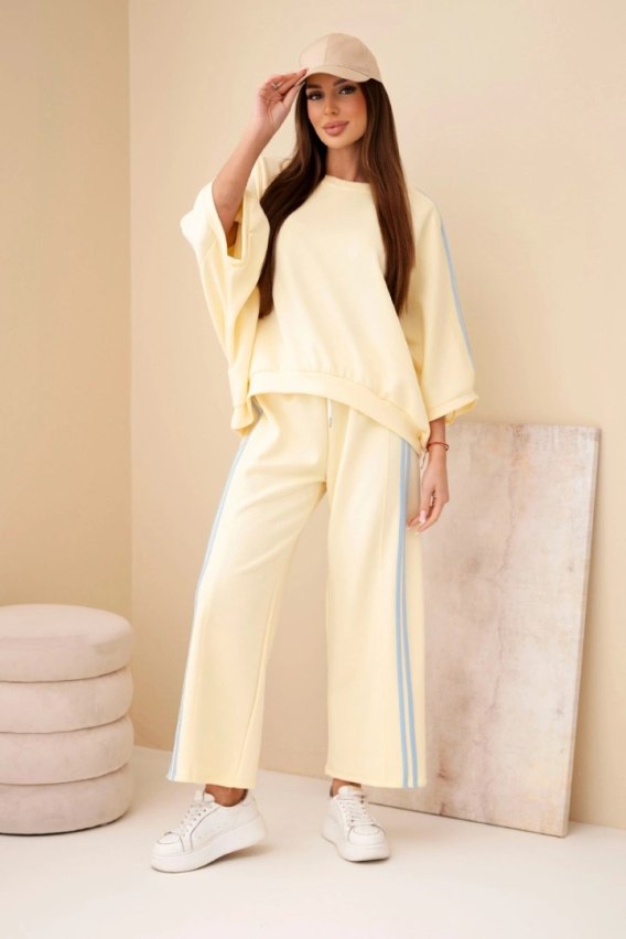 Komplet damski wiskozowy masełko z szeroką nogawką i luźną bluzą żółty
