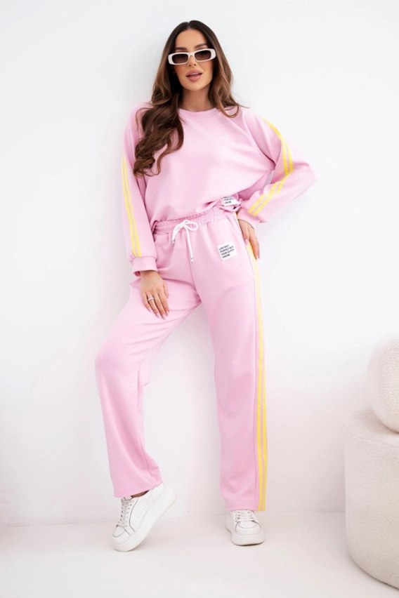 Komplet dresowy damski Masełko z lampasami i luźną bluzą cukierkowy róż