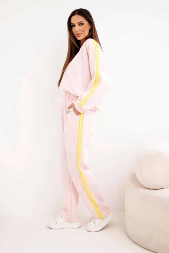 Komplet dresowy damski Masełko z lampasami i luźną bluzą pudrowy róż