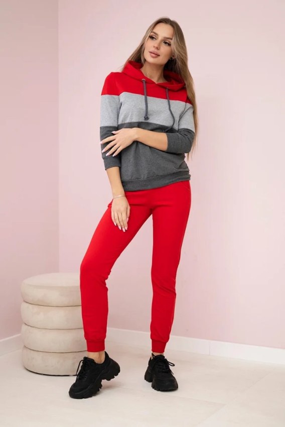 Prezentujemy Państwu komplet bluzy i spodni w kolorowe pasy. Komplet wykonany jest z wysokiej jakości materiału. Rozmiar jest uniwersalny i będzie odpowiedni dla Pań w rozmiarze S, M lub L.