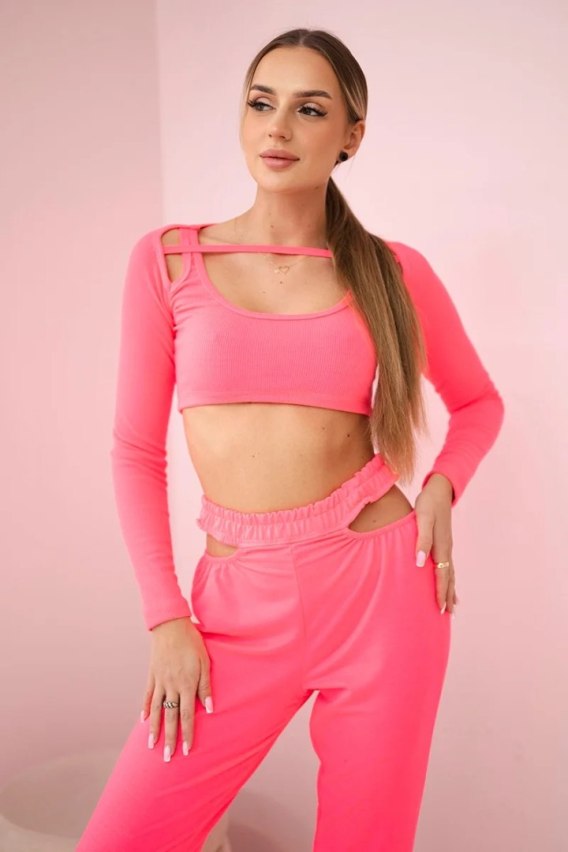 Komplet z bluzką top różowy neon