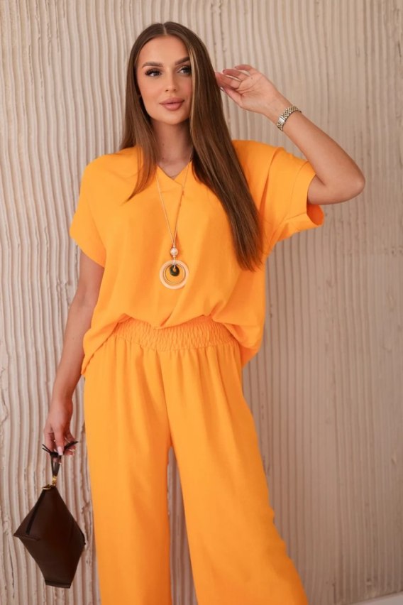 Komplet z naszyjnikiem bluzka + spodnie jasny pomarańczowy