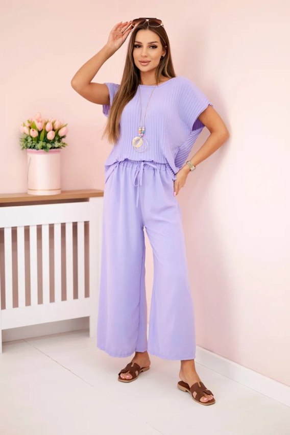 Komplet z wiskozy bluzka plisowana + spodnie jasny fioletowy