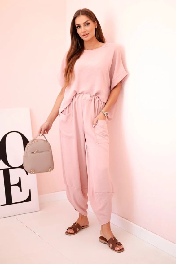 Komplet z wiskozy bluzka + spodnie ciemny pudrowy róż