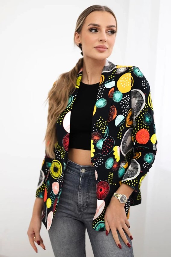 Marynarka bawełniana z kolorowym nadrukiem to doskonałe połączenie klasyki i nowoczesności. Wykonana z wysokiej jakości bawełny, zapewnia wygodę i przewiewność, a jednocześnie nadaje stylizacji wyrazisty charakter. Jej unikalny, kolorowy nadruk przyciąga uwagę i pozwala wyróżnić się z tłumu, dodając odrobiny artystycznego sznytu do każdej garderoby. Klasyczny krój marynarki z eleganckim klapami sprawdza się zarówno w formalnych, jak i casualowych stylizacjach. Ta marynarka to idealny wybór dla osób, które cenią sobie indywidualizm, kreatywność i wygodę w codziennym ubiorze. Połącz ją z jednolitymi spodniami lub jeansami, by stworzyć modny i niebanalny look. Marynarka wykonana jest z wysokiej jakości materiału. Marynarka posiada podszewkę. Marynarka dostępna w rozmiarach M, L, XL.