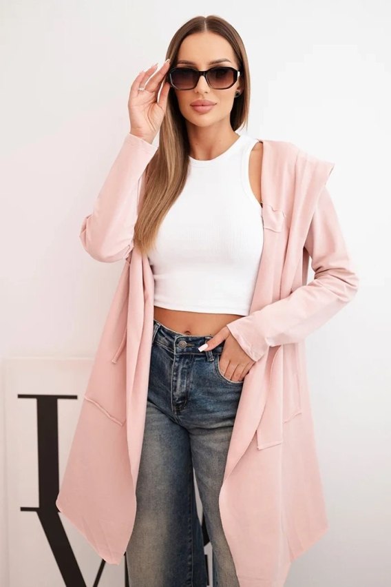 Narzutka z luźnym kapturem ciemny pudrowy róż