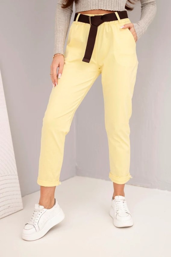 Spodnie damskie bawełniane z paskiem i podwijaną nogawką żółte