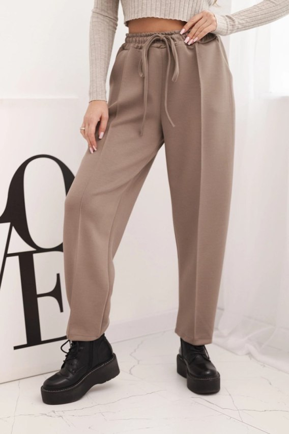 Spodnie damskie z wysokim stanem i wiązaniem w pasie fango