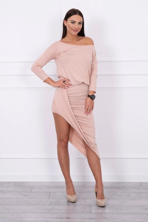 Sukienka asymetryczna, 3/4 rękaw pudrowy beż