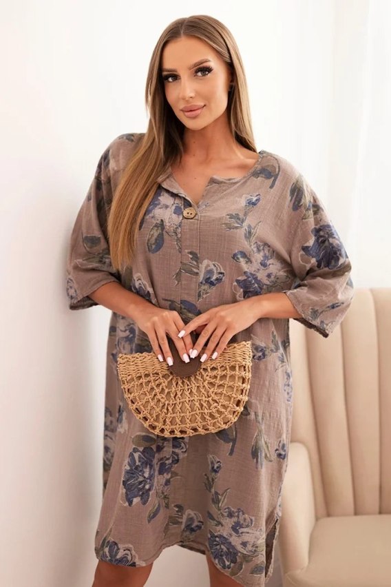 Sukienka damska bawełniana z kwiatowym wzorem i rękawem 3/4 fango