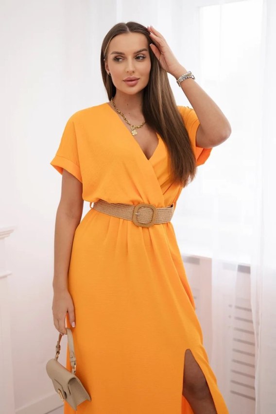 Sukienka długa z ozdobnym paskiem pomarańczowa