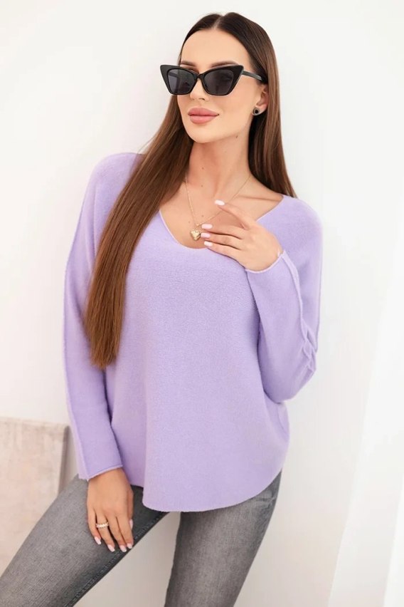 Sweter damska z wiskozą z dekoltem w serek jasno fioletowy