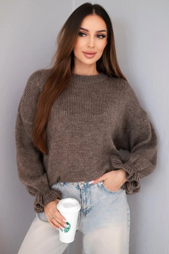 Ten sweter damski to idealne połączenie stylu i komfortu - luźny fason i modny, swobodny krój sprawiają, że będzie niezastąpiony w Twojej jesienno-zimowej garderobie. Wykonany z mieszanki miękkich i ciepłych włókien, sweter gwarantuje wygodę noszenia przez cały dzień. Bufiaste rękawy zakończone ściągaczem dodają mu uroku i nowoczesnego charakteru.