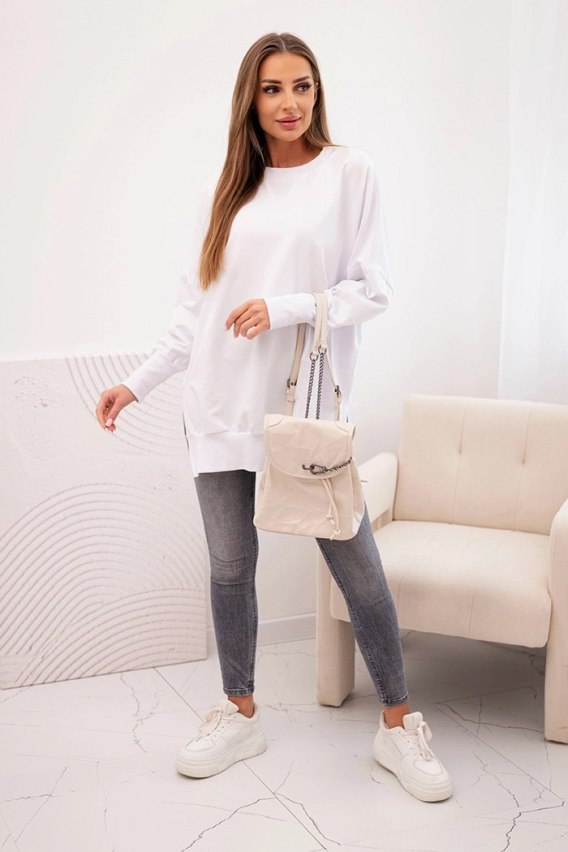 Bluza damska bawełniana z szerokim ściągaczem na dole biała