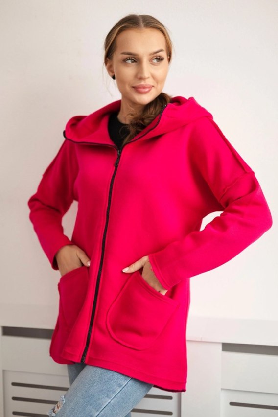 Bluza ocieplana z dłuższym tyłem i kieszeniami fuksja