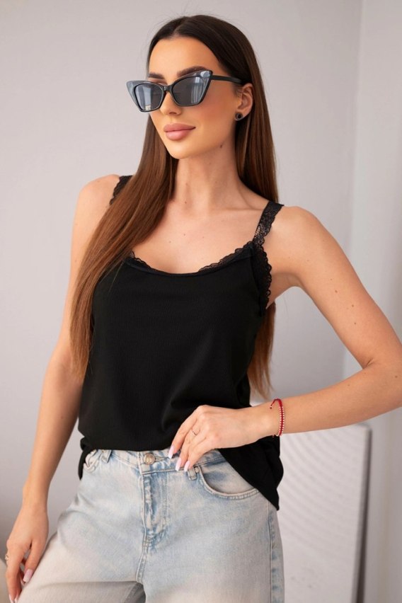 Bluzka damska na ramiączkach z koronkowym wykończeniem czarna