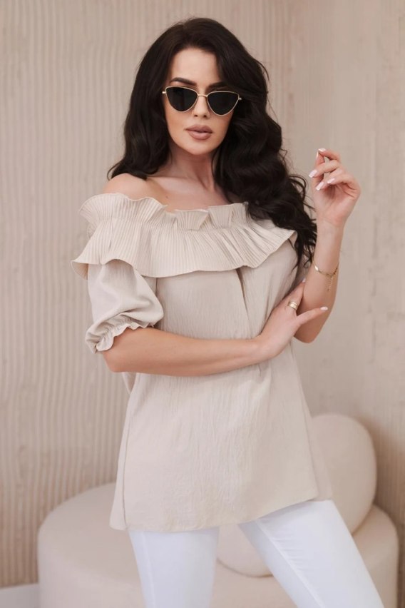 Odkryj romantyczną elegancję w naszej bluzce z uroczą ozdobną falbanką. Ta bluzka to połączenie delikatności i wyrafinowanego stylu, które sprawi, że poczujesz się jak prawdziwa królowa. Wykonana z wysokiej jakości materiałów, zapewniająca nie tylko wygodę, ale także doskonałą prezencję. Ozdobna falbana dodaje subtelnej finezji i delikatności, tworząc efektowny akcent na każdej sylwetce. Z krótkimi rękawami i klasycznym dekoltem hiszpanka jest idealna na wieczorne wyjścia czy romantyczne spotkania. Dostępna w różnorodnych kolorach, abyś mogła wyrazić swój osobisty styl. Rozmiar jest uniwersalny i będzie odpowiedni dla Pań noszących rozmiar S, M lub L.