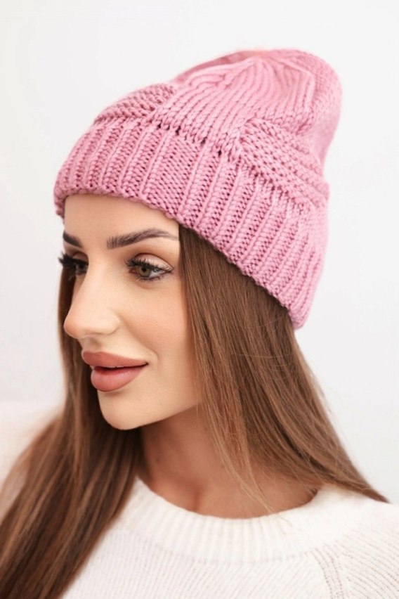 Czapka damska zimowa akrylowa z ozdobnym splotem K462 jasno fioletowa