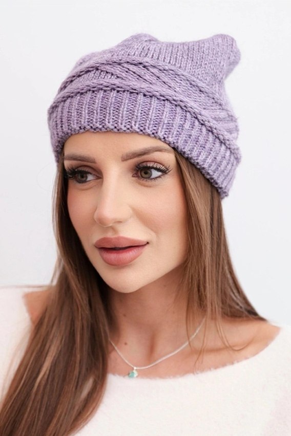 Czapka damska zimowa z wełny i z przeplatanym wzorem K428 fioletowa