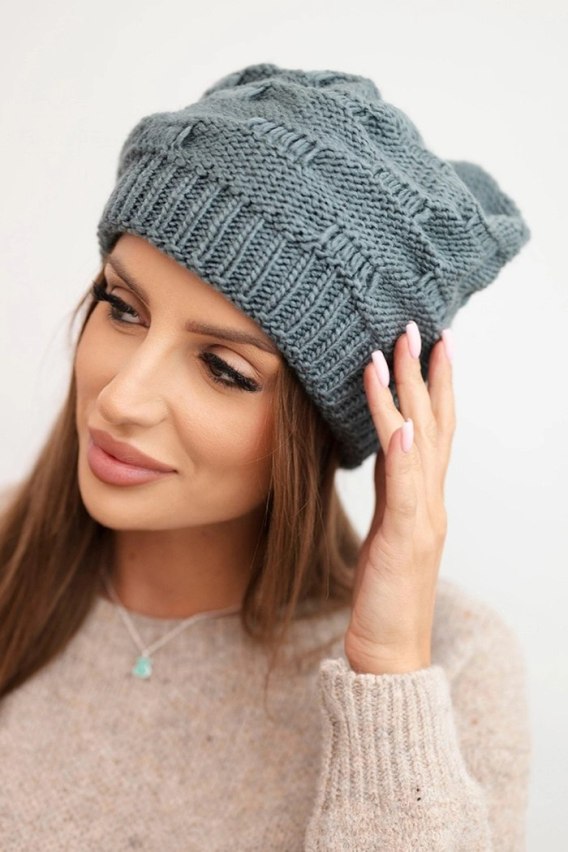 Czapka damska zimowa z wełny z ozdobnym splotem K451 ciemno szara