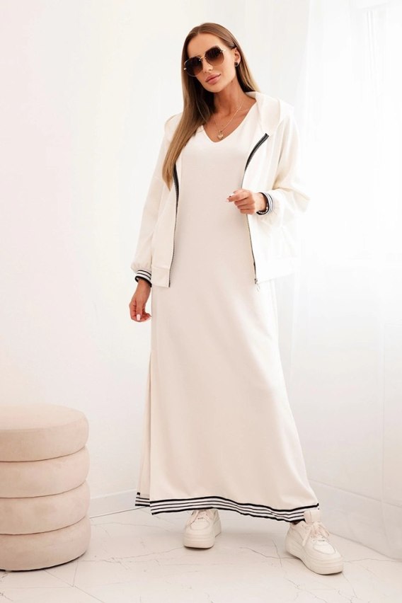 Komplet damska z wiskozą z rozpinaną bluzą i długą sukienką ecru