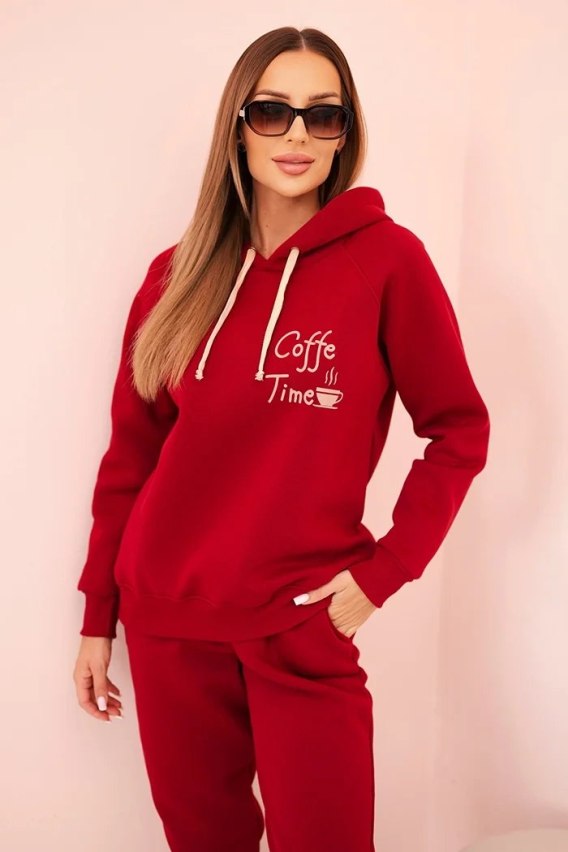 Komplet damski bawełniany ocieplany z nadrukiem bordowy