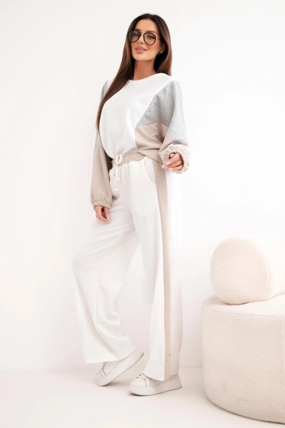 Komplet damski masełko z luźną bluzą i spodniami z szeroką nogawką beżowy