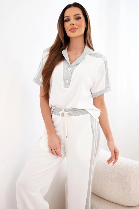 Komplet damski masełkowy z bluzą polo i szerokimi spodniami szary