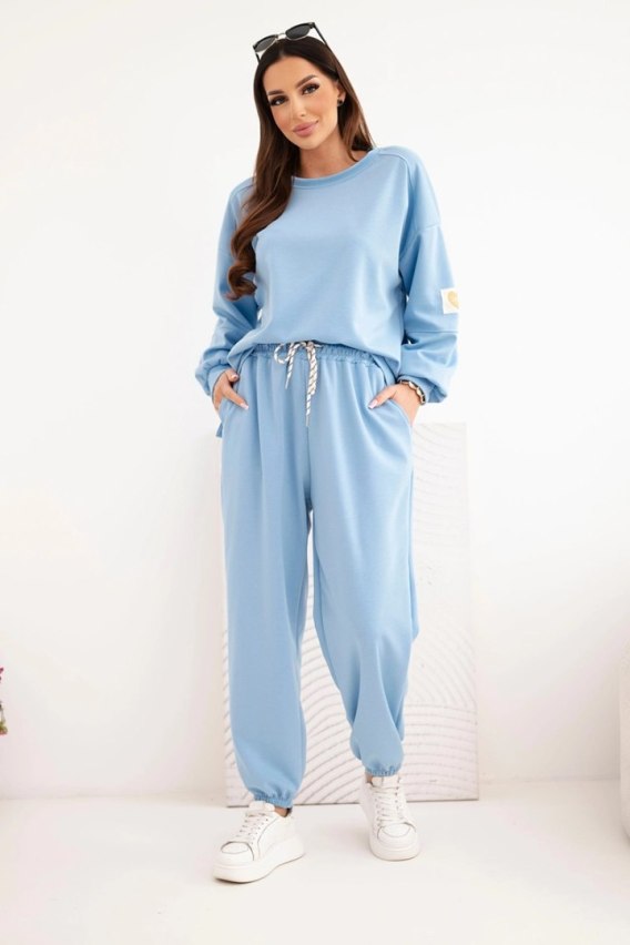 Komplet damski masełkowy z luźną bluzą i spodniami z napisem LOVE niebieski