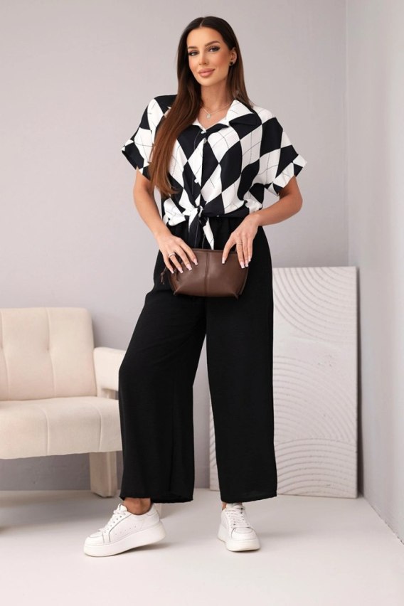 Komplet damski wiskozowy koszula z wiązaniem i spodnie z gumką czarny