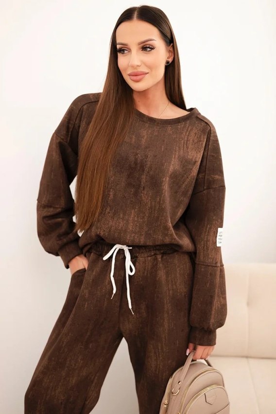 Komplet dresowy damski oversize z wiskozy i z efektem sprania brązowy