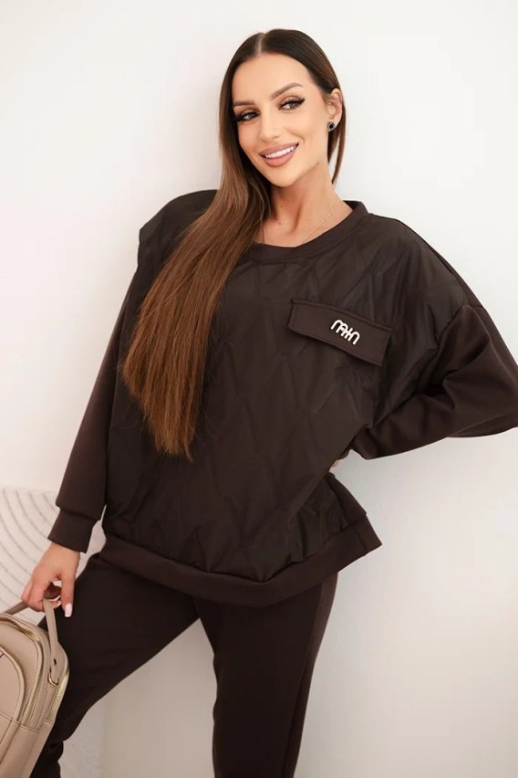 Komplet dresowy damski z wiskozy z pikowaną bluzą i spodniami brązowy