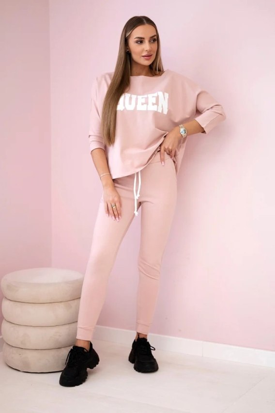 Komplet z nadrukiem Queen ciemny pudrowy róż