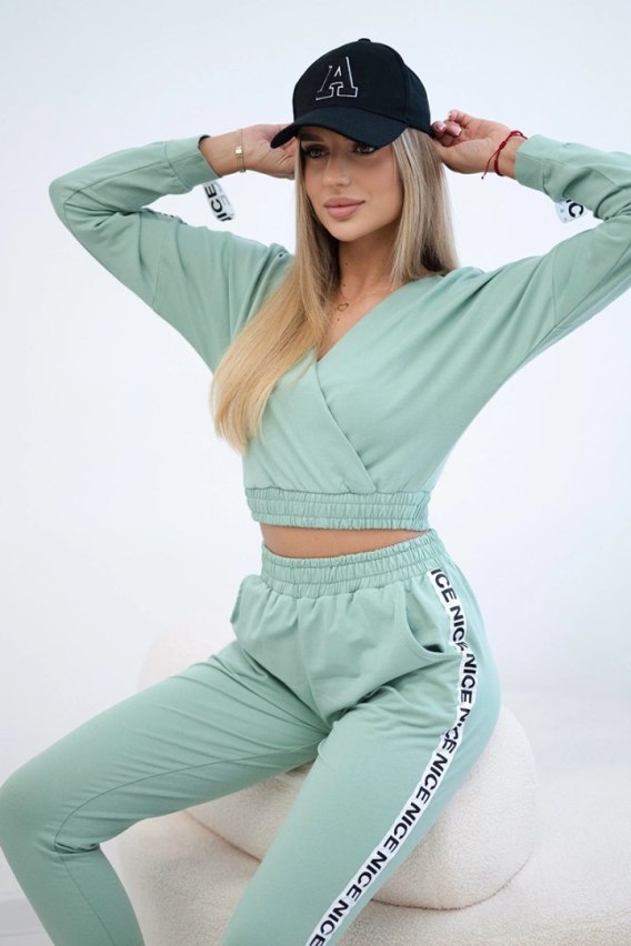 Komplet z ozdobnymi taśmami ciemno miętowy