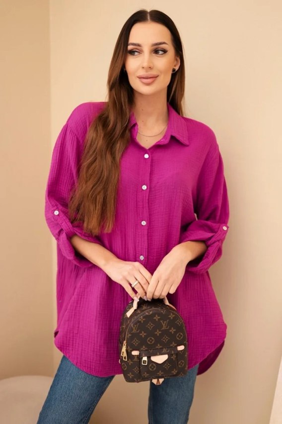 Koszula bawełniana muślinowa Plus Size ciemny fioletowy