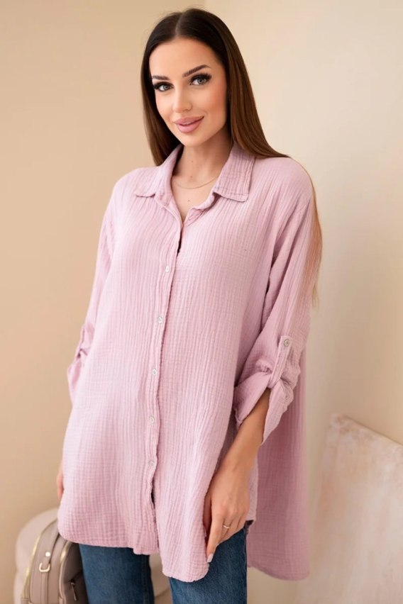 Koszula bawełniana muślinowa Plus Size ciemny pudrowy róż